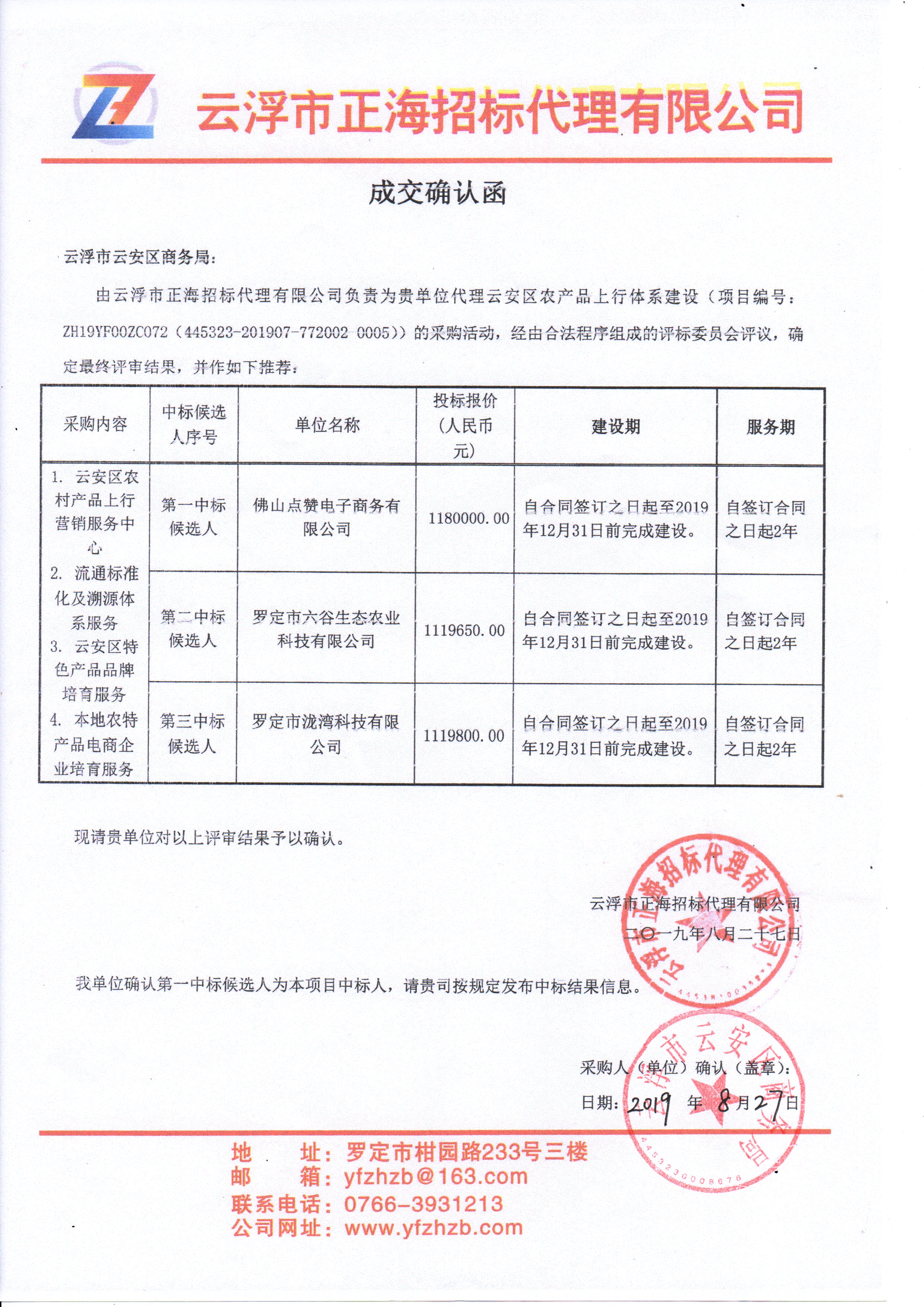 成交确认函(农产品上行)