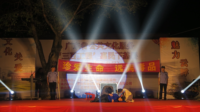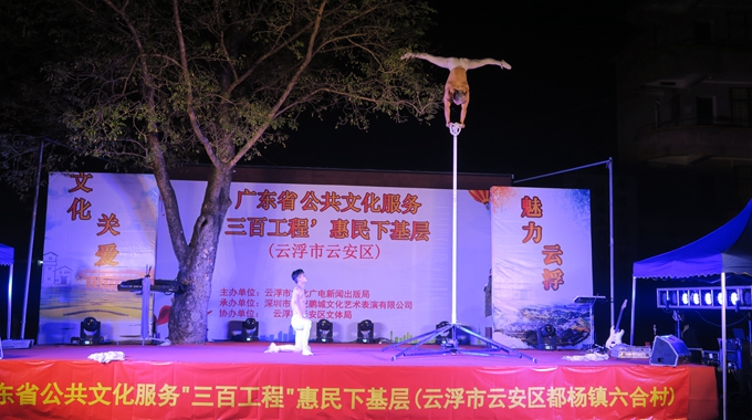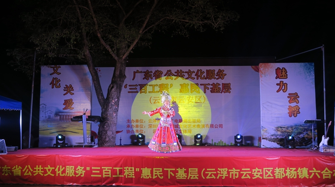 文化关爱,美丽的文艺之花开遍地。文化乐民,齐心聚力共铸美丽云浮。2019年1月10日晚,由云浮市文化广电新闻出版局主办,云浮市云安区文化和体育局协办,深圳市世纪鹏城文化艺术表演有限公司承办的广东省公共文化服务“三百工程”惠民下基层活动在云浮市云安区都杨镇六合村都骑中学举办。