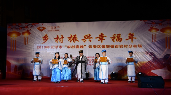 为深入贯彻落实市委六届四次全会精神,大力挖掘培育文明乡风,传承弘扬优秀传统文化,加强农村先进文化阵地建设,连日来,“乡村振兴幸福年”——2019年云浮市“农村春晚”云安区的7场演出陆续在该区各镇村上演,迎接春节、营造喜庆祥和的浓厚氛围的同时,令各地群众享受到了文化盛宴,近距离感受到了向上、向善的力量。至131日,全区到现场观看晚会演出的社会各界群众多达10000余人,乡村群众自编自演,欢聚一堂,共赏节目,共同表达对2019年的憧憬与希望。