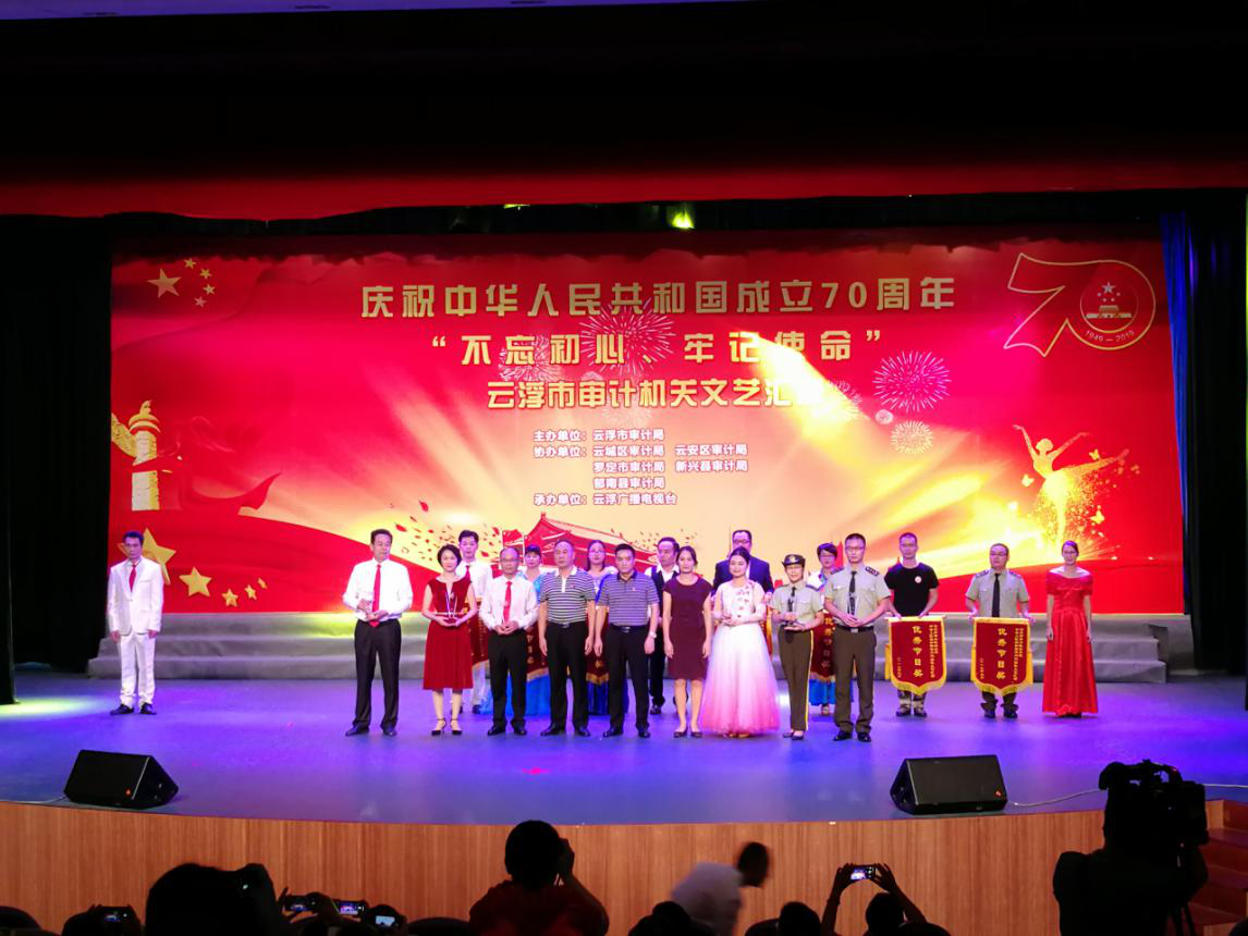 9月26日下午,云浮市审计机关以“不忘初心、牢记使命”为主题,在市文化馆小影剧院举办全市审计机关庆祝中华人民共和国成立70周年文艺汇演活动,云浮市云安区审计局全体干部职工参加了汇演。