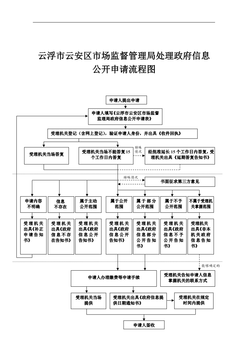 云浮市云安区市场监督管理局处理政府信息公开申请流程图