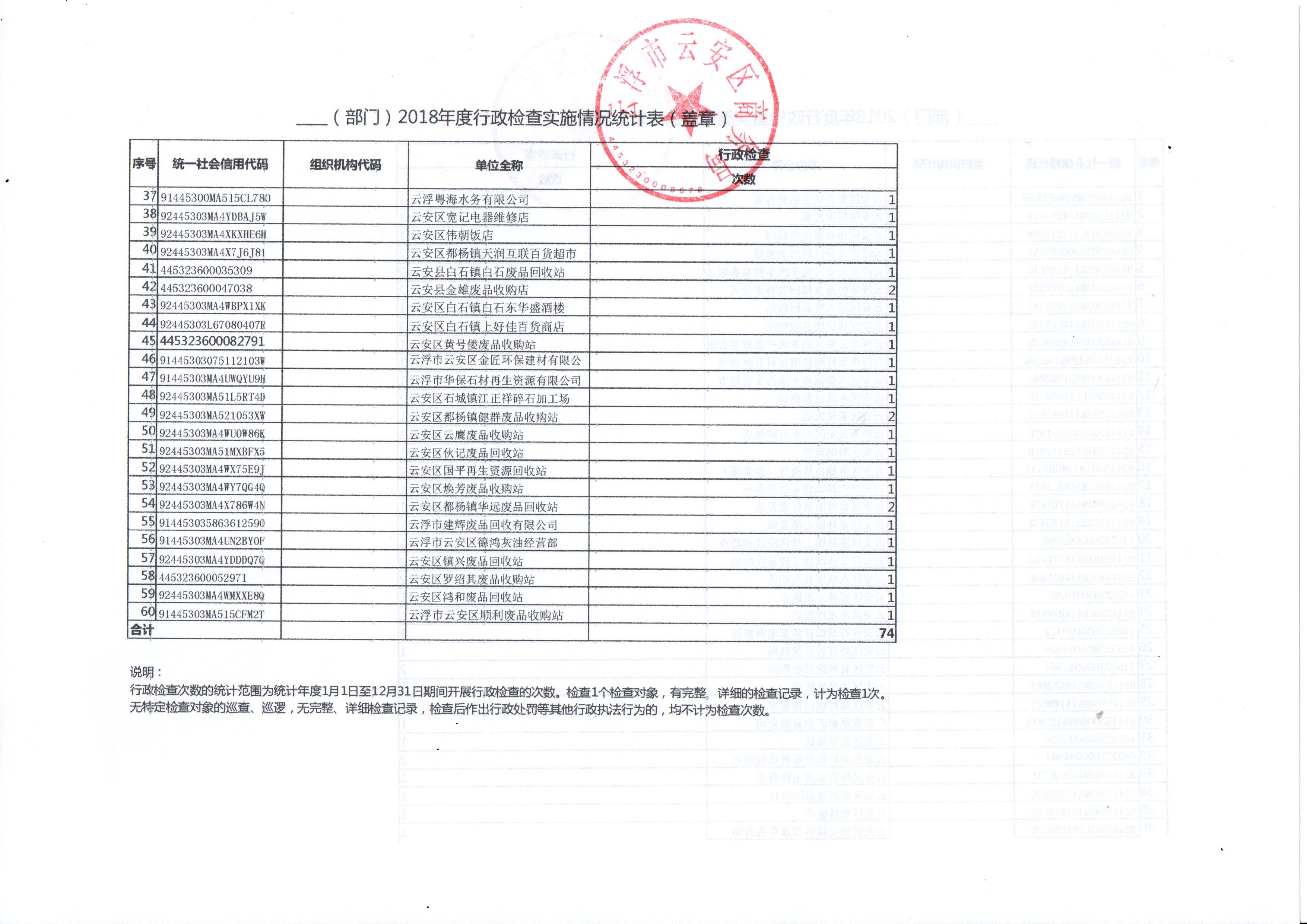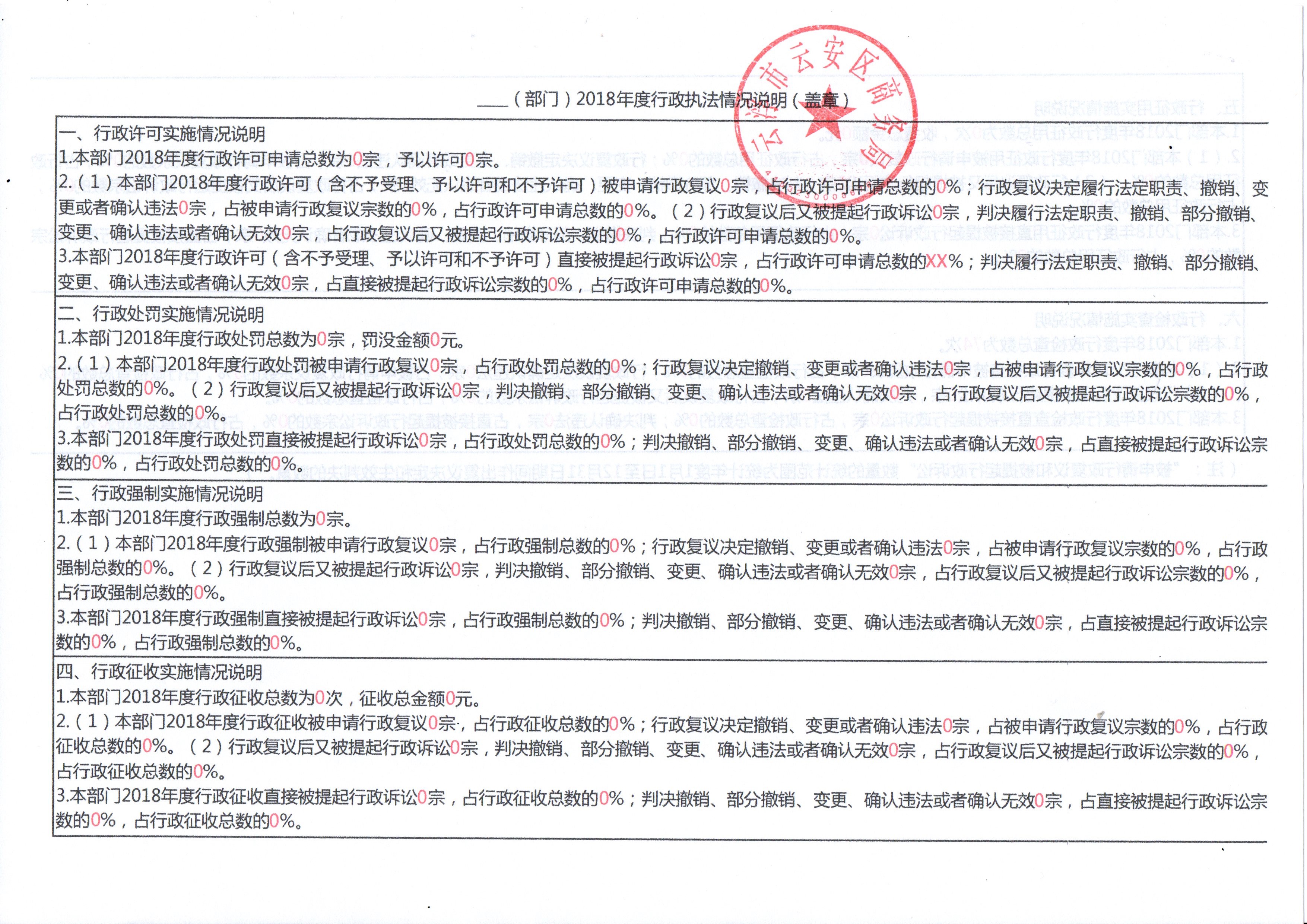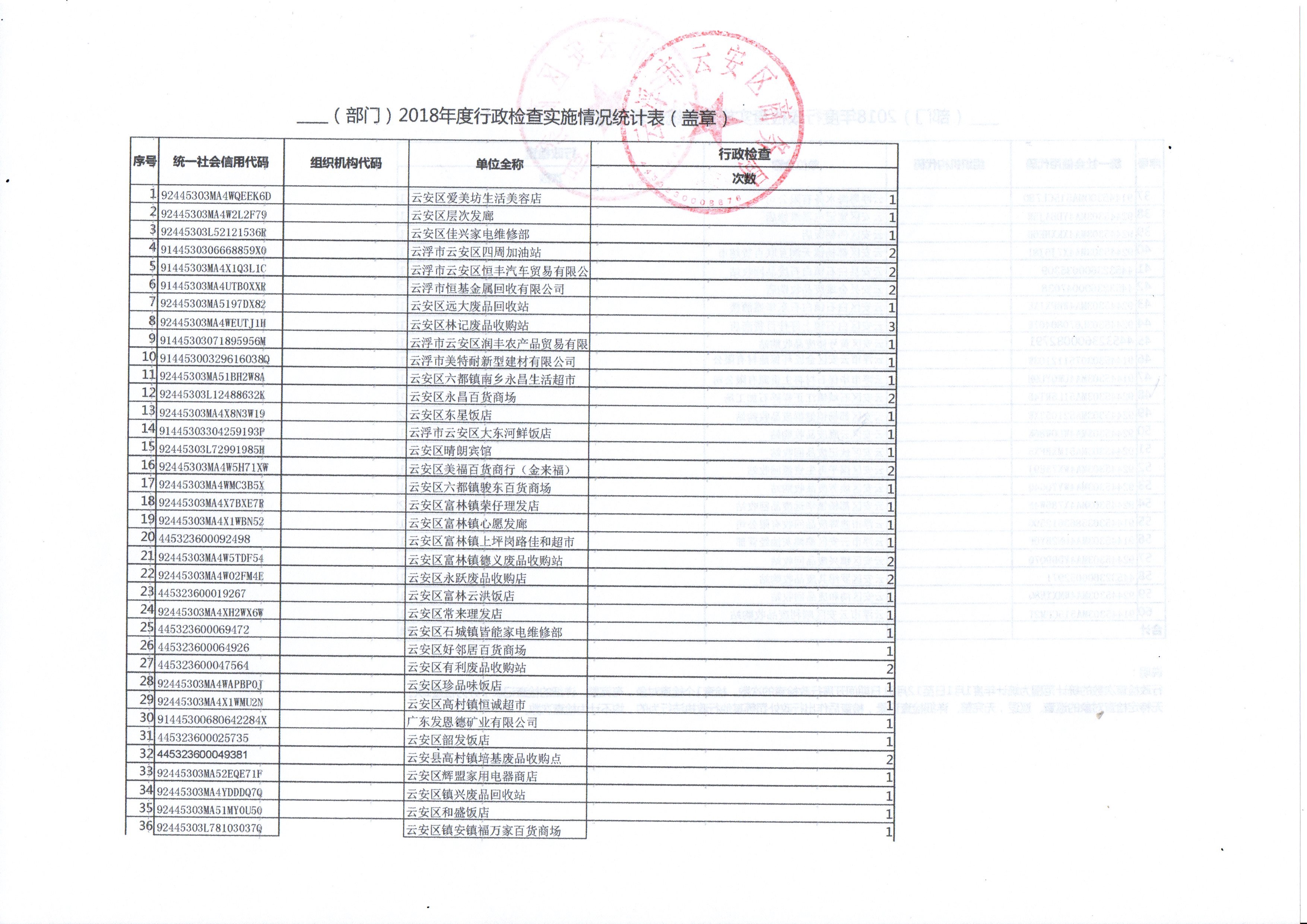 云浮市云安区商务局2018年广东省行政执法年度数据公开